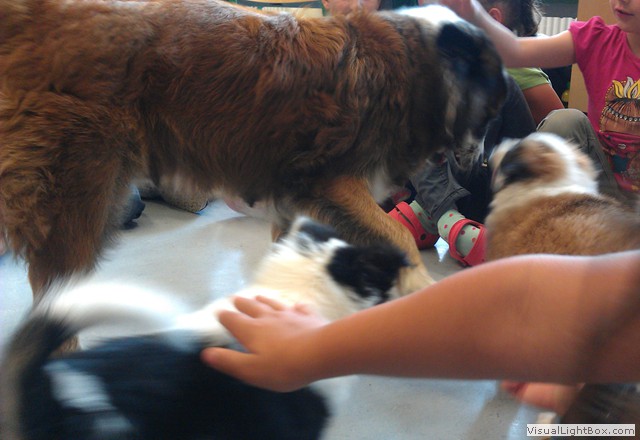 Schon nach kurzer Zeit haben alle Hunde die Kinder als Streichel- und Spielpartner entdeckt. Freudig sind alle drei auf die vielen lockenden Hände zugegangen.