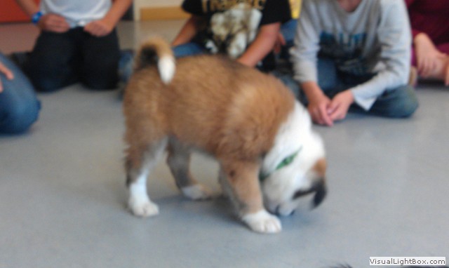 Die Jungen und Mädchen haben sich vorbildlich verhalten, haben sich still in einen Kreis gesetzt und den Vierbeinern erst mal Zeit gelassen, die Umgebung kennen zu lernen.
