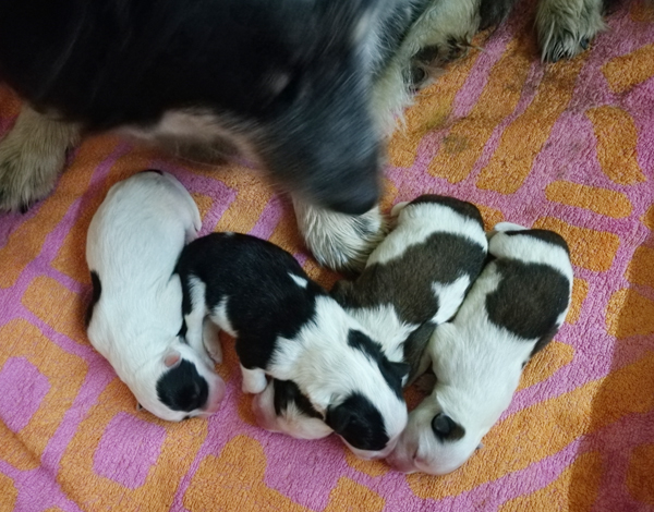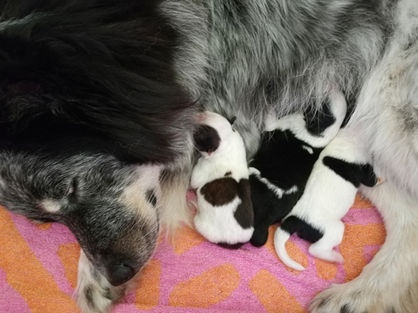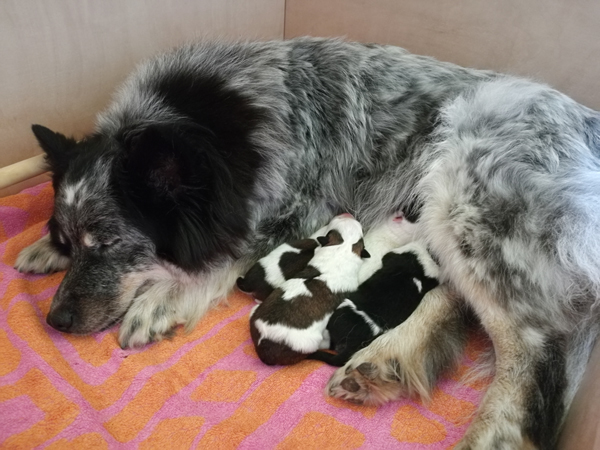 Den Anfang machte der Junge. Nur 8 Minuten später folgte die helle Schwester. Da konnte Pepper ihre neue Rolle in allen Facetten ausprobieren, hat geschleckt, gesäugt, gehechelt.