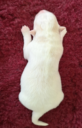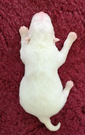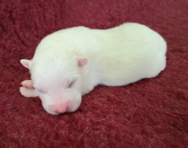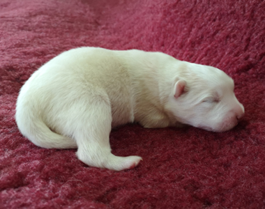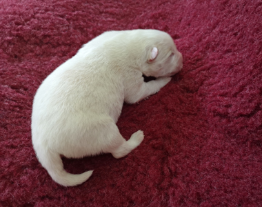 Nach einer lange durchwachten Nacht war die Entscheidung für einen Kaiserschnitt notwendig. So freuten wir uns am Morgen des 4. Juni 2019 über zwei nahezu gleiche weiße Rüden.
